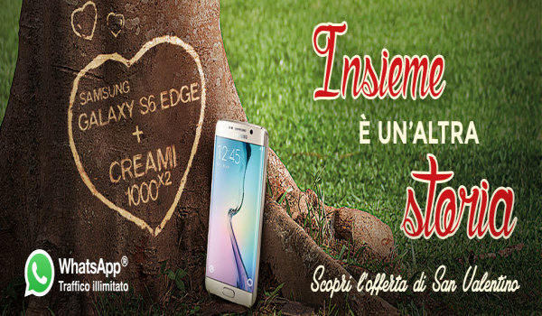 L’offerta San Valentino di PosteMobile permette di acquistare il Samsung Galaxy S6 edge con un anticipo di 79 euro (anziché 99 euro) e 30 rate mensili da 19 euro ciascuna (invece di 22 euro) abbinato all’attivazione del piano CREAMI 1000 al costo di 10 euro al mese con il raddoppio dei credit (2000 anziché 1000) e la navigazione illimitata su WhatsApp.